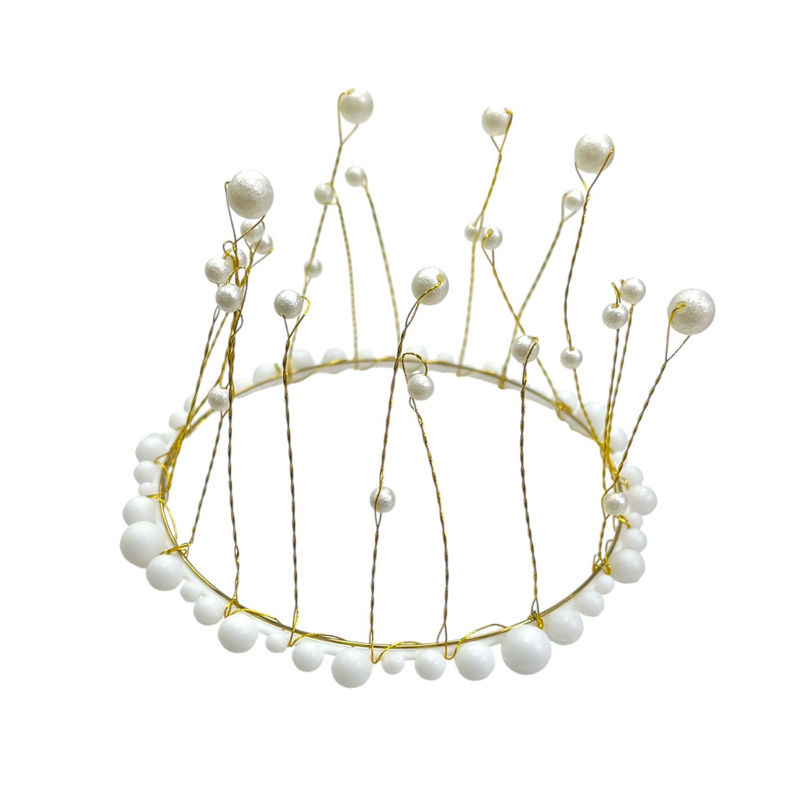 Adorno Cake Topper Corona Dorada con Perlas Blancas 12cm