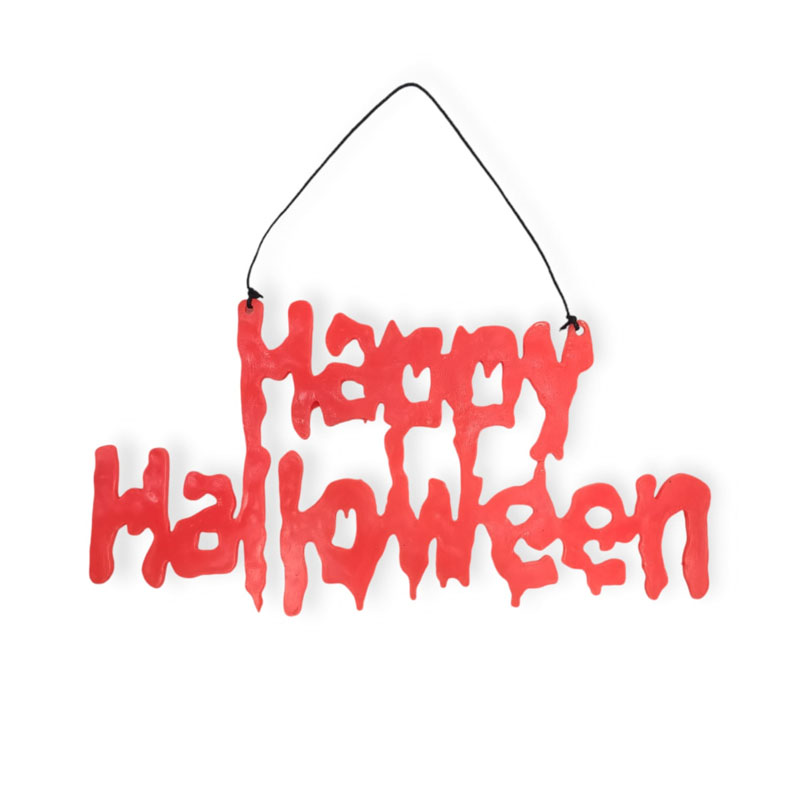 Adorno Colgante Happy Halloween Naranja Fluo Plástico Color: Naranja Medidas aproximadas: 32 cm x 15 cm