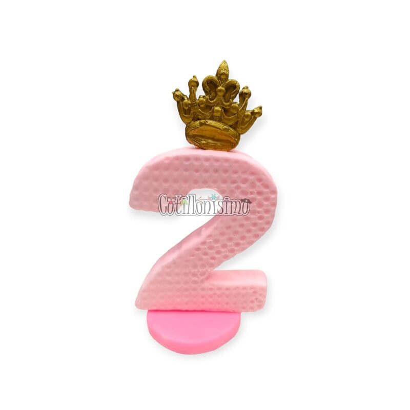 / Adorno de Porcelana Numero 2 Rosa con Corona