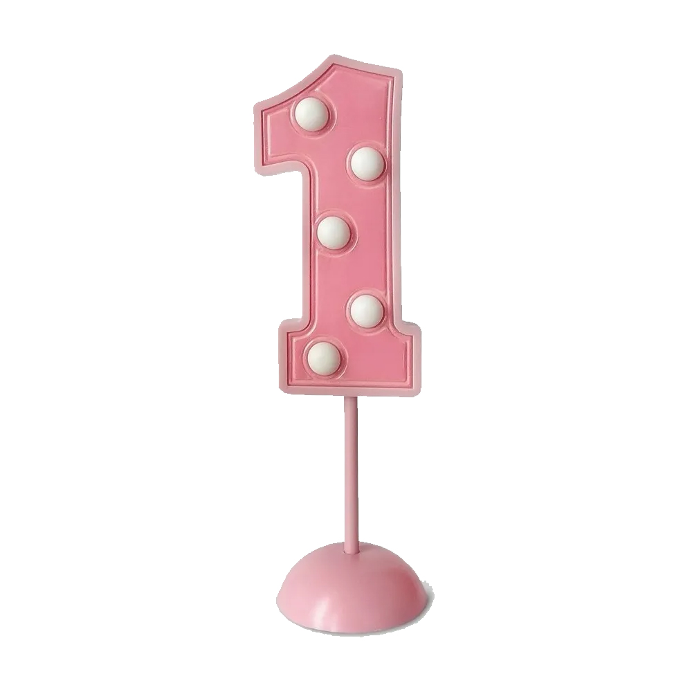 Numero 1 de Mesa con Led Luz Adorno Torta Topper Plastico Color Rosa Pastel Luz Blanca Medidas: 17cm aprox de alto Con Base para apoyar