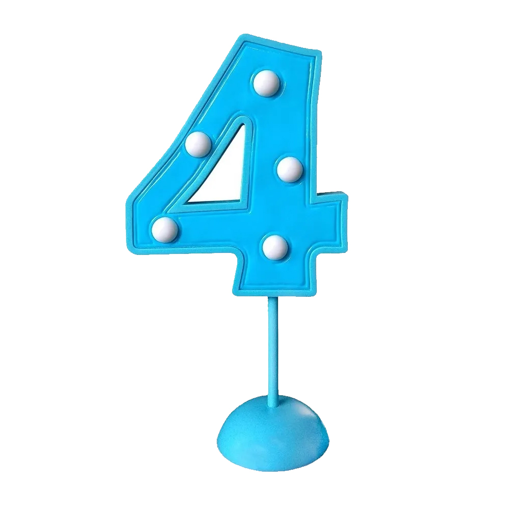 Numero 4 de Mesa con Led Luz Adorno Torta Topper Plastico Color Celeste Luz Blanca Medidas: 17cm aprox de alto Con Base para apoyar