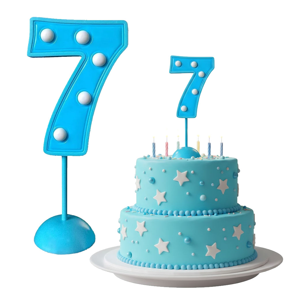 Adorno de Torta Número 7 Luminoso Color Celeste