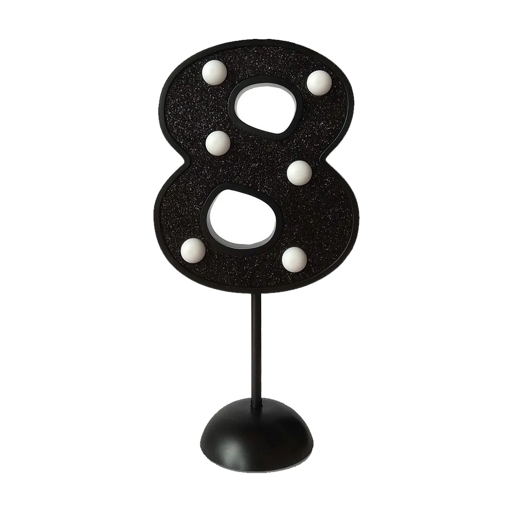 Numero 8 de Mesa con Led Luz Adorno Torta Topper Plastico Color Negro Luz Blanca Medidas: 17cm aprox de alto Con Base para apoyar