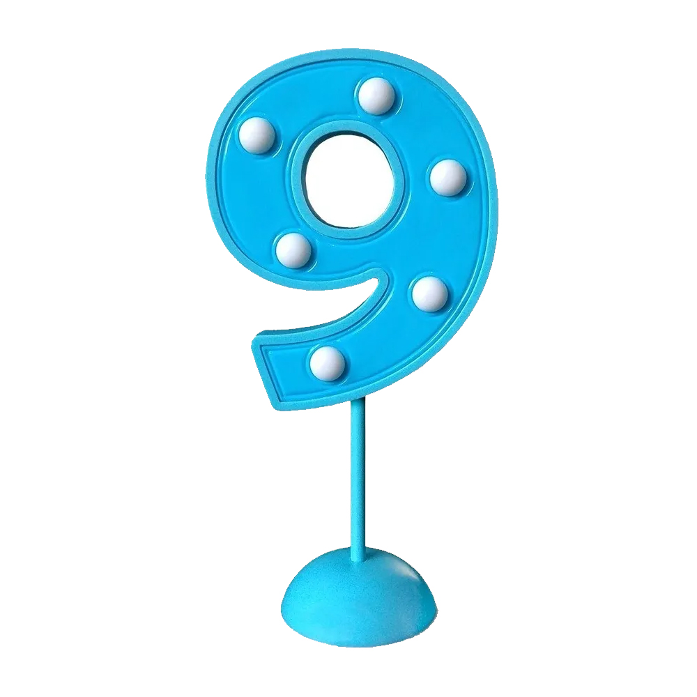Numero 9 de Mesa con Led Luz Adorno Torta Topper Plastico Color Celeste Luz Blanca Medidas: 17cm aprox de alto Con Base para apoyar