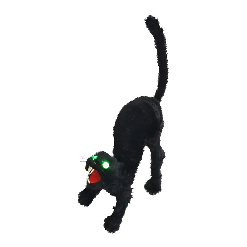 Adorno Decoración Gato Negro Bestia Agazapado Con Ojos Verdes Halloween – Pilas incluidas – Luz Led Verde Medidas aproximadas : 32 x 32 x 19 cm