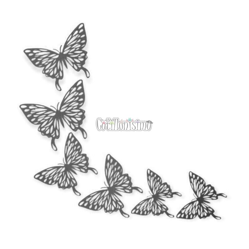 Adorno Mariposa Calada Negro x6 Unidades Modelos Surtidos El modelo se entrega de forma surtida según disponibilidad del stock Incluye 3 tamaños distintos de mariposas Tamaños aproximados:  8cm – 10cm – 13 cm Incluye pegamento para adherirlas No son comestibles El color puede ser similar a la foto