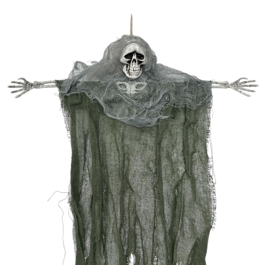 Adornito Colgante Halloween Calavera Craneo Cabeza Parka Muerto Material: Plástico y Tela Medidas aproximadas: 60 x 45 x 6cm (tela desplegada y estirada)