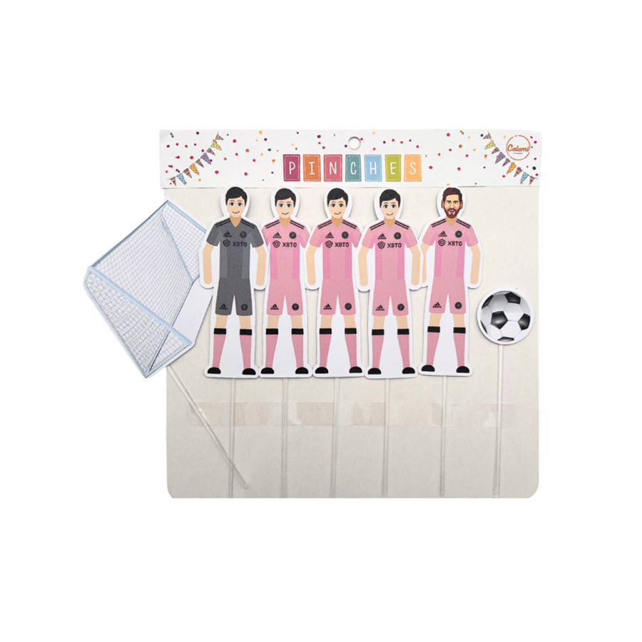 Adorno Pinche Jugadores para la Torta Silueta Arco y Pelota Inter Miami x5 Unidades Incluye palito para clavar
