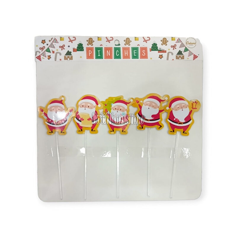 Adorno Pinche Set Navidad Santa Claus – Papa Noel x5 Unidades Incluye palito para clavar Medida aproximada: 11 cm x 3 cm