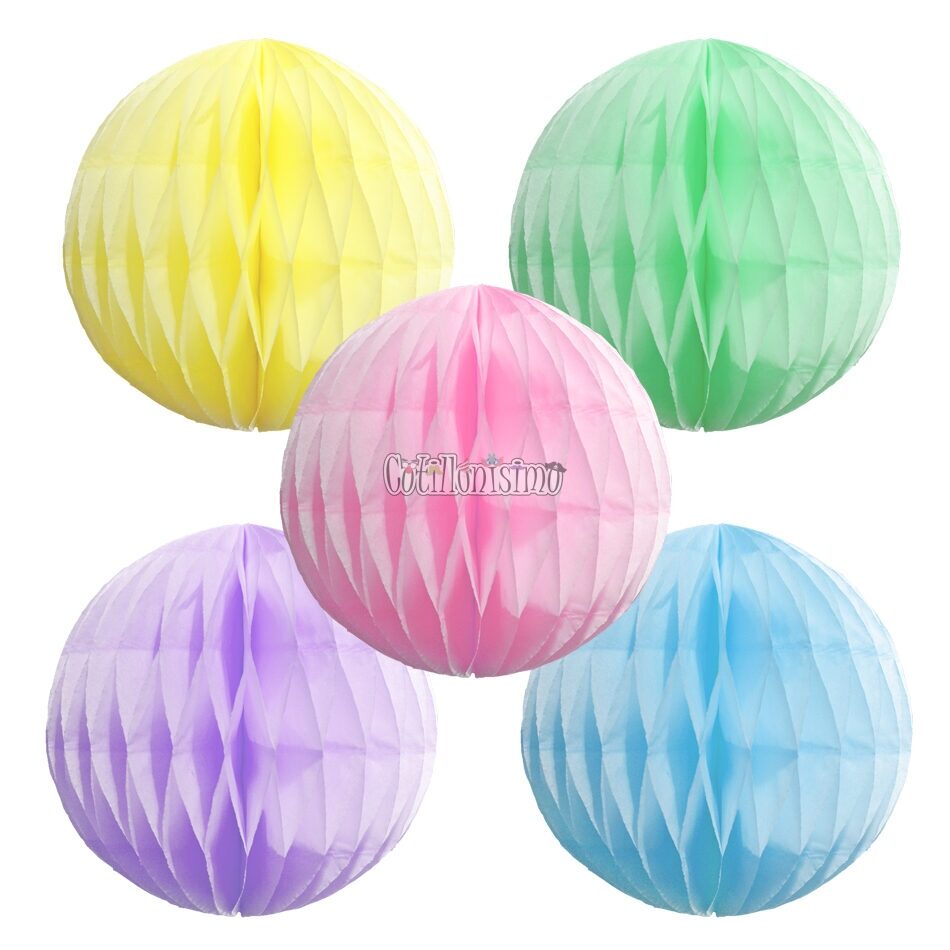 Adorno de papel con forma de esfera mediana Colgante en colores pastel. Medida Aproximada: 18cm.