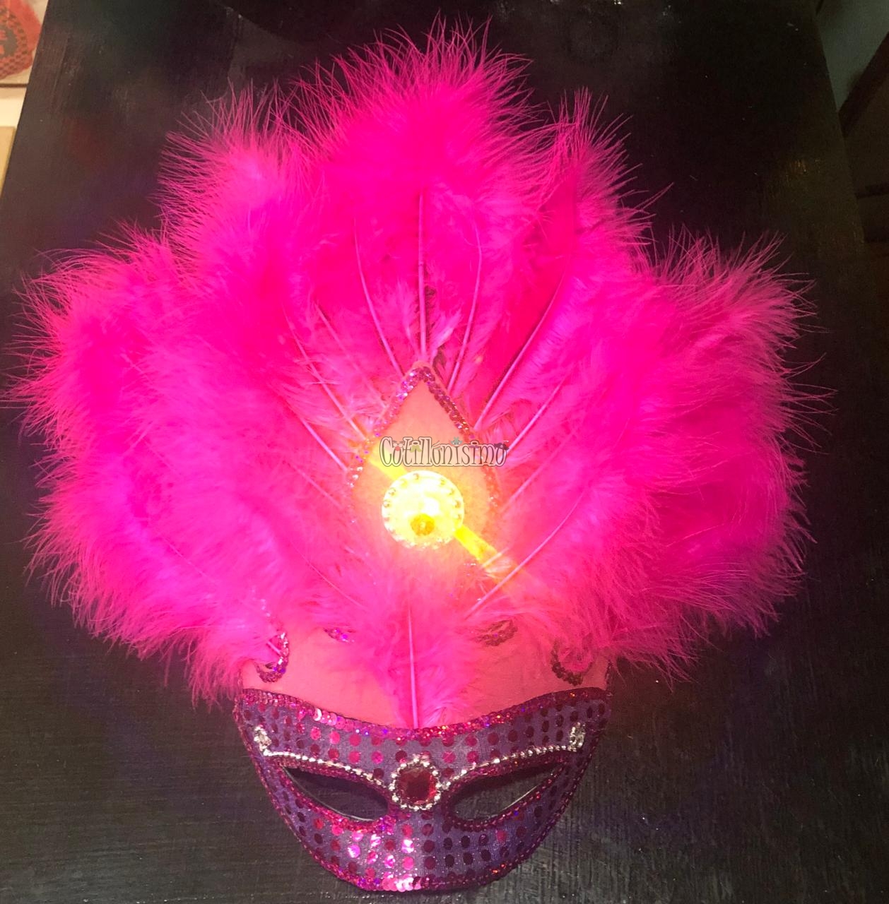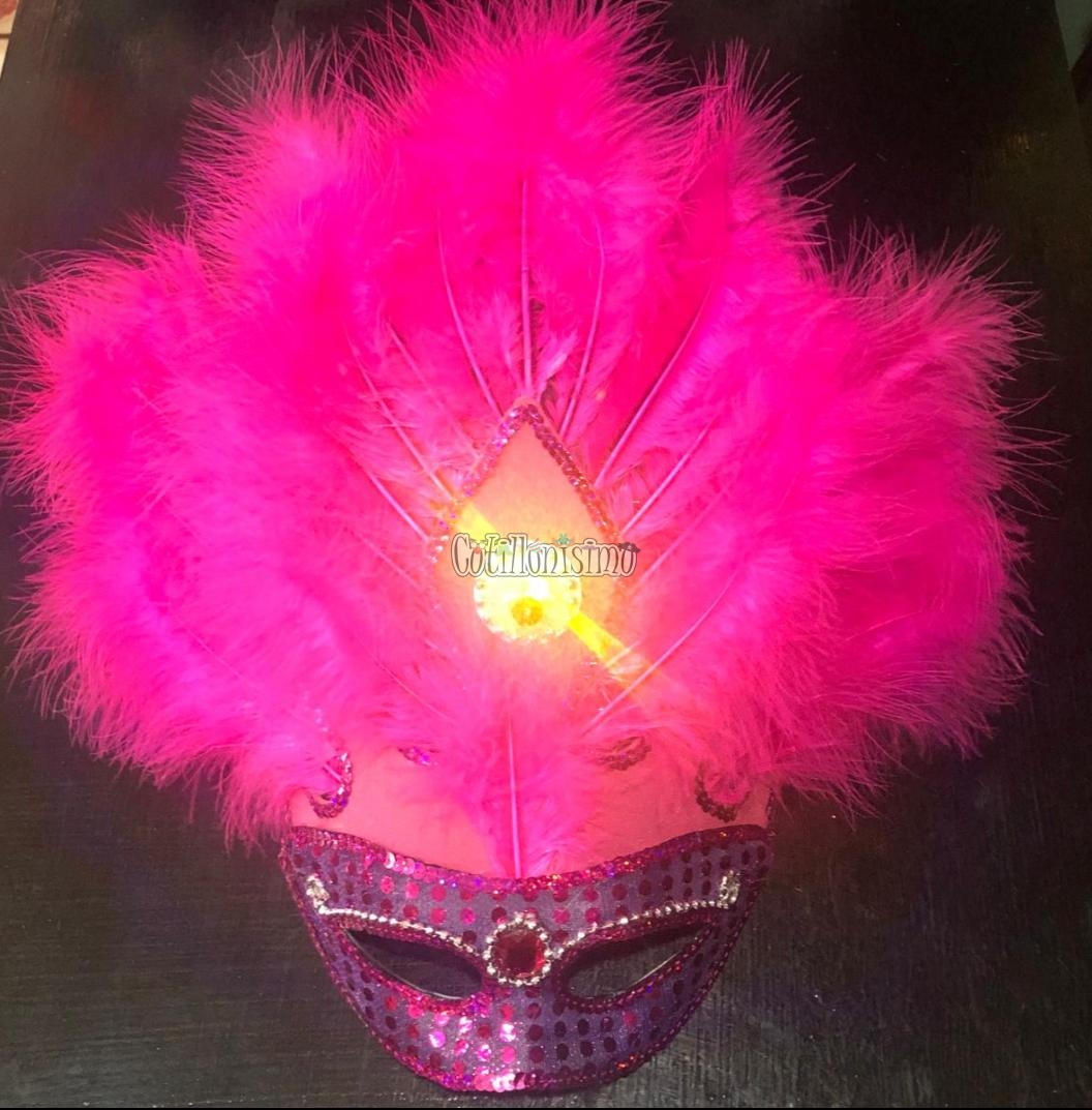 Antifaz Lentejuela con Plumas AGUILON Luminoso (LED) Color FUCSIA