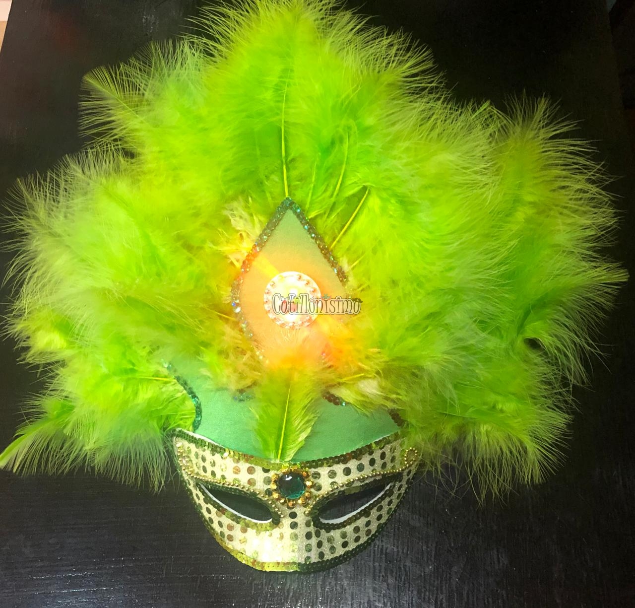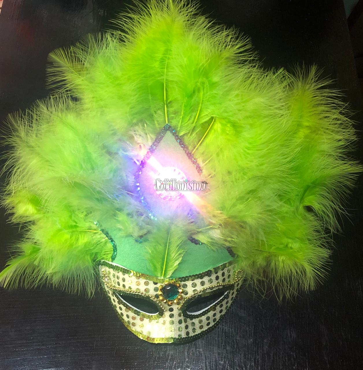 / Antifaz Lentejuela con Plumas AGUILON Luminoso (LED) Color VERDE MANZANA