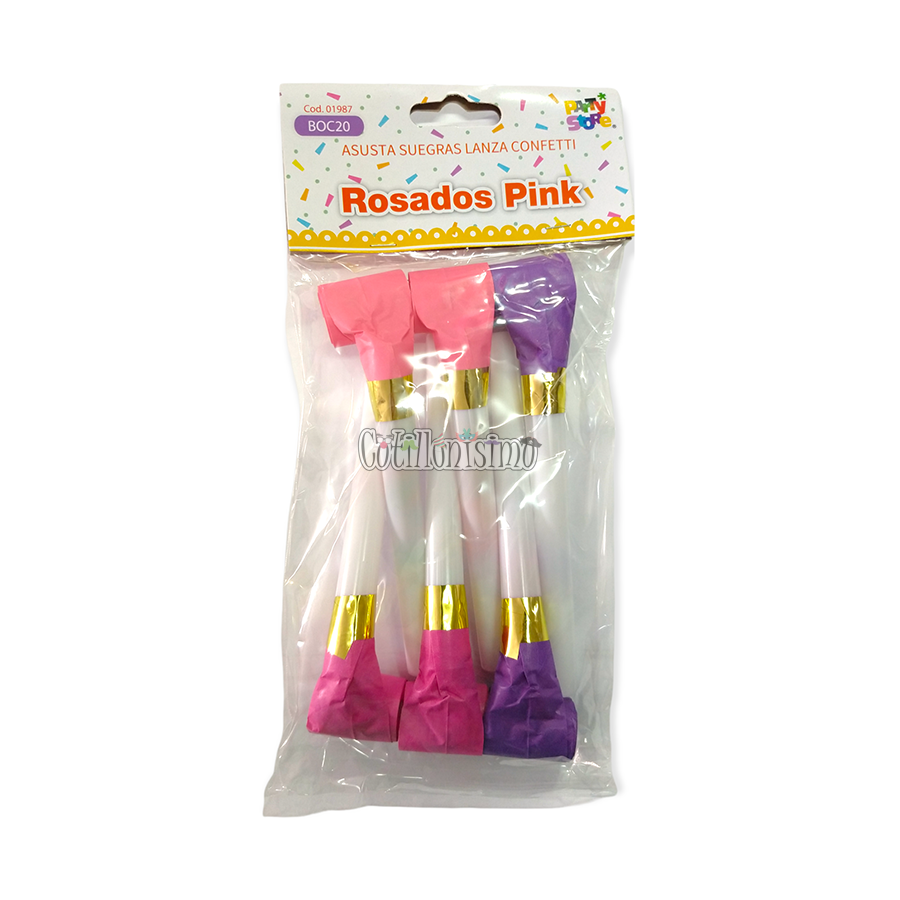 Asusta Suegras Lanza Confetti Rosa Pink por 6 unidades Medidas: 15cm largo Con confetti dentro que sale al soplar por primera vez!