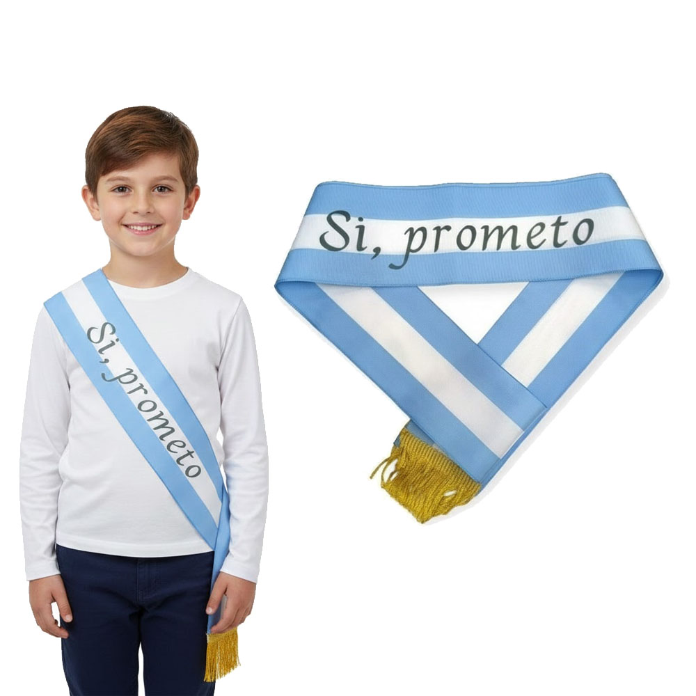 Banda Patria Sublimada Si, Prometo – Juramento a la Bandera – 70 cm Celeste y Blanca Argentina