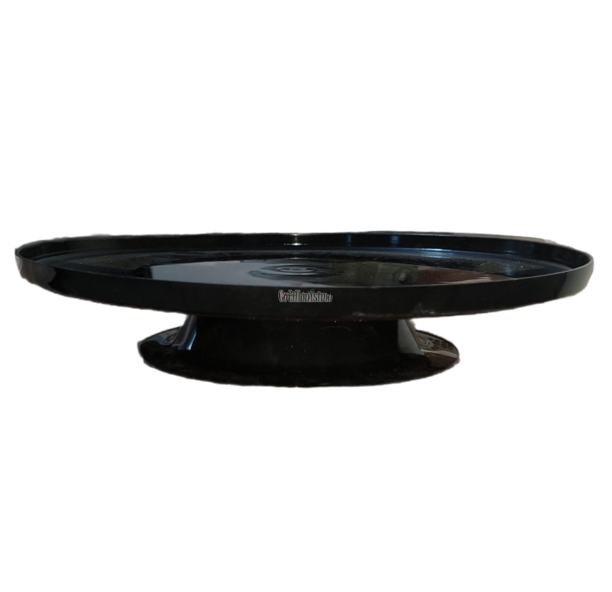 Bandeja Posa Torta con Pie Color Negro Material: Plastico Medidas: Alto: 5cm Circunferencia de la bandeja: 26cm