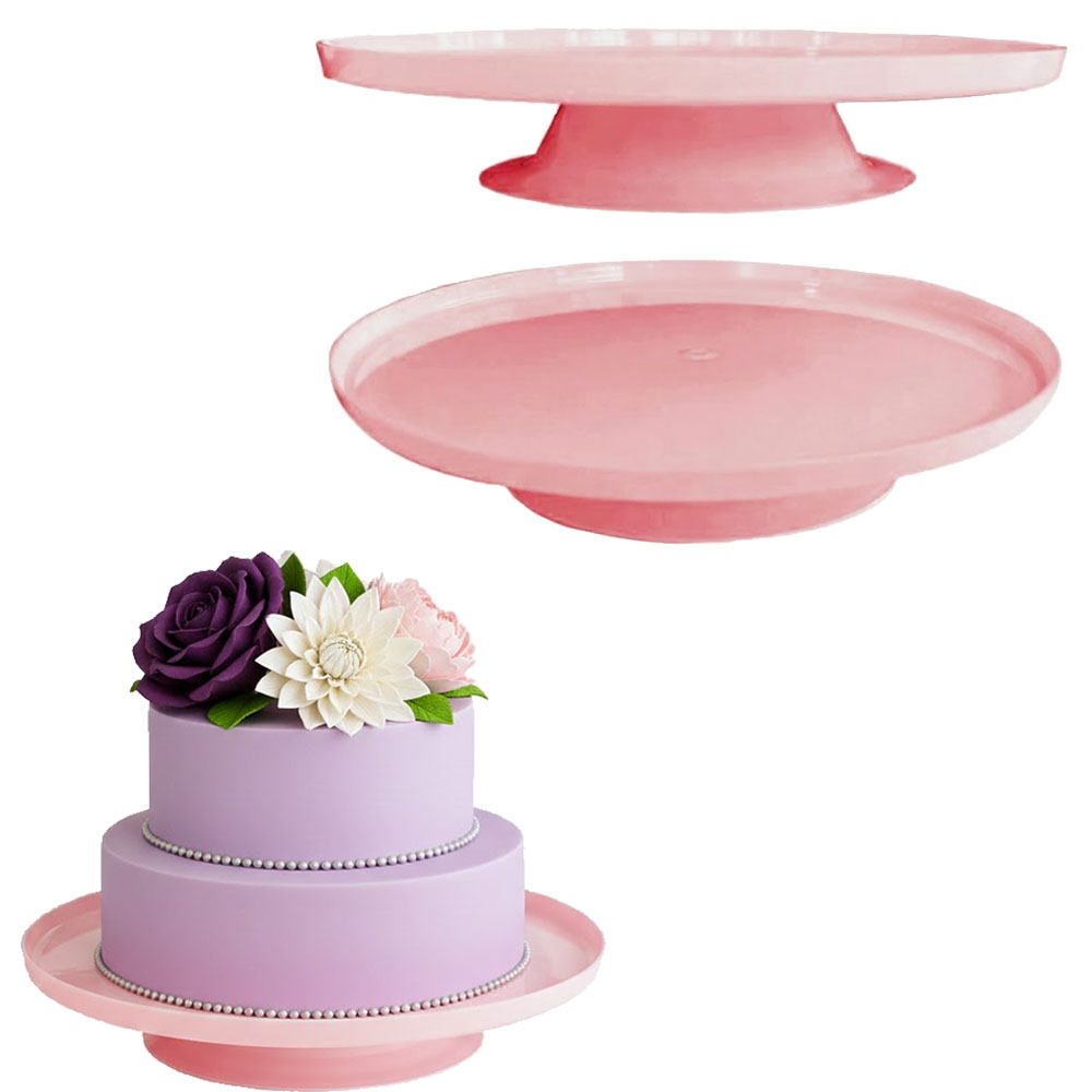 Bandeja Posa Torta con Pie Color Celeste Pastel Material: Plastico Medidas: Alto: 5cm Circunferencia de la bandeja: 26cm