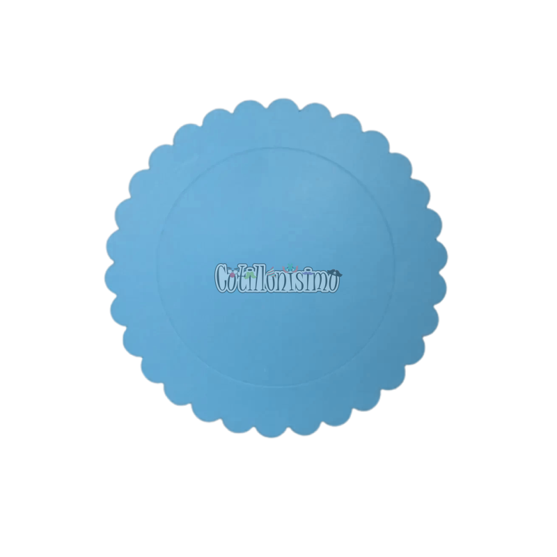 Disco – Redondo Sol – Flor Cartón Laminado Celeste 34 cm Medida aproximada: 34 cm Color: Celeste Material: Carton