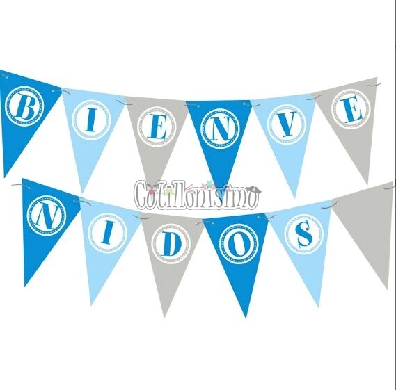 Banderin Bienvenidos Celeste 2,40 Mts Modelo: Bienvenidos Celeste Material: Carton Incluye hilo para colgar.