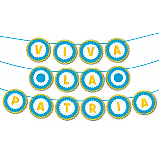 Guirnalda Banderin con Forma Frase Cartel Bandera Argentina Escarapela “Viva la Patria” 270 cm aproximadamente Goldmundo Incluye hilo para armar
