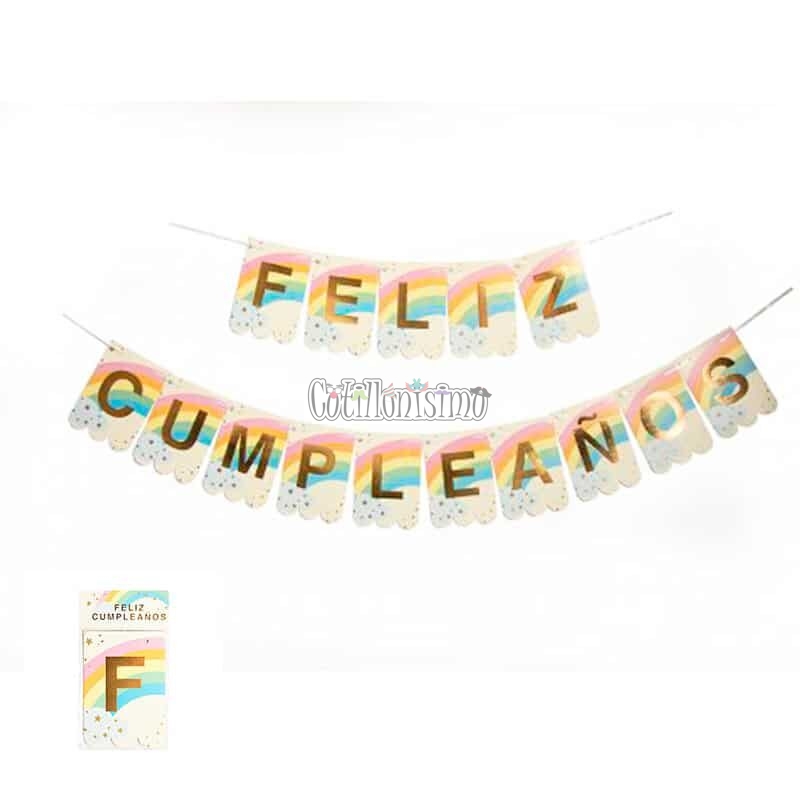 / Banderin FELIZ CUMPLEAÑOS Amarillo Pastel y Arcoiris
