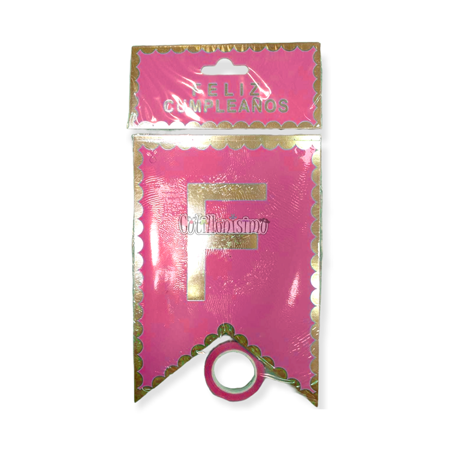 Banderin FELIZ CUMPLEAÑOS Fucsia Borde Dorado