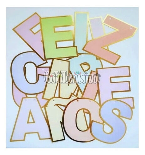 Banderin Guirnalda Cartel “FELIZ CUMPLEAÑOS” Multicolor Pastel BORDE DORADO