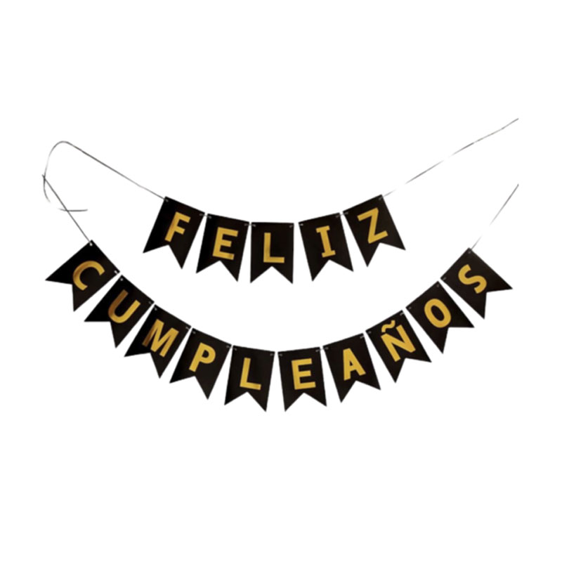 / Banderin FELIZ CUMPLEAÑOS Negro y Dorado
