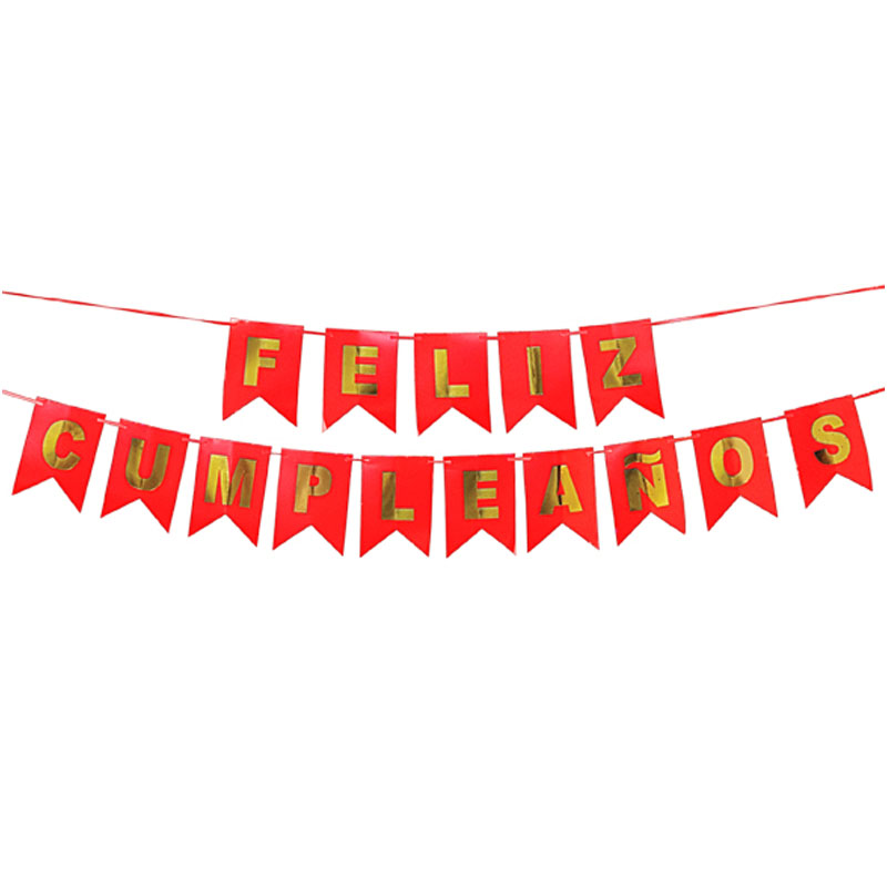 Banderin FELIZ CUMPLEAÑOS Rojo y Dorado
