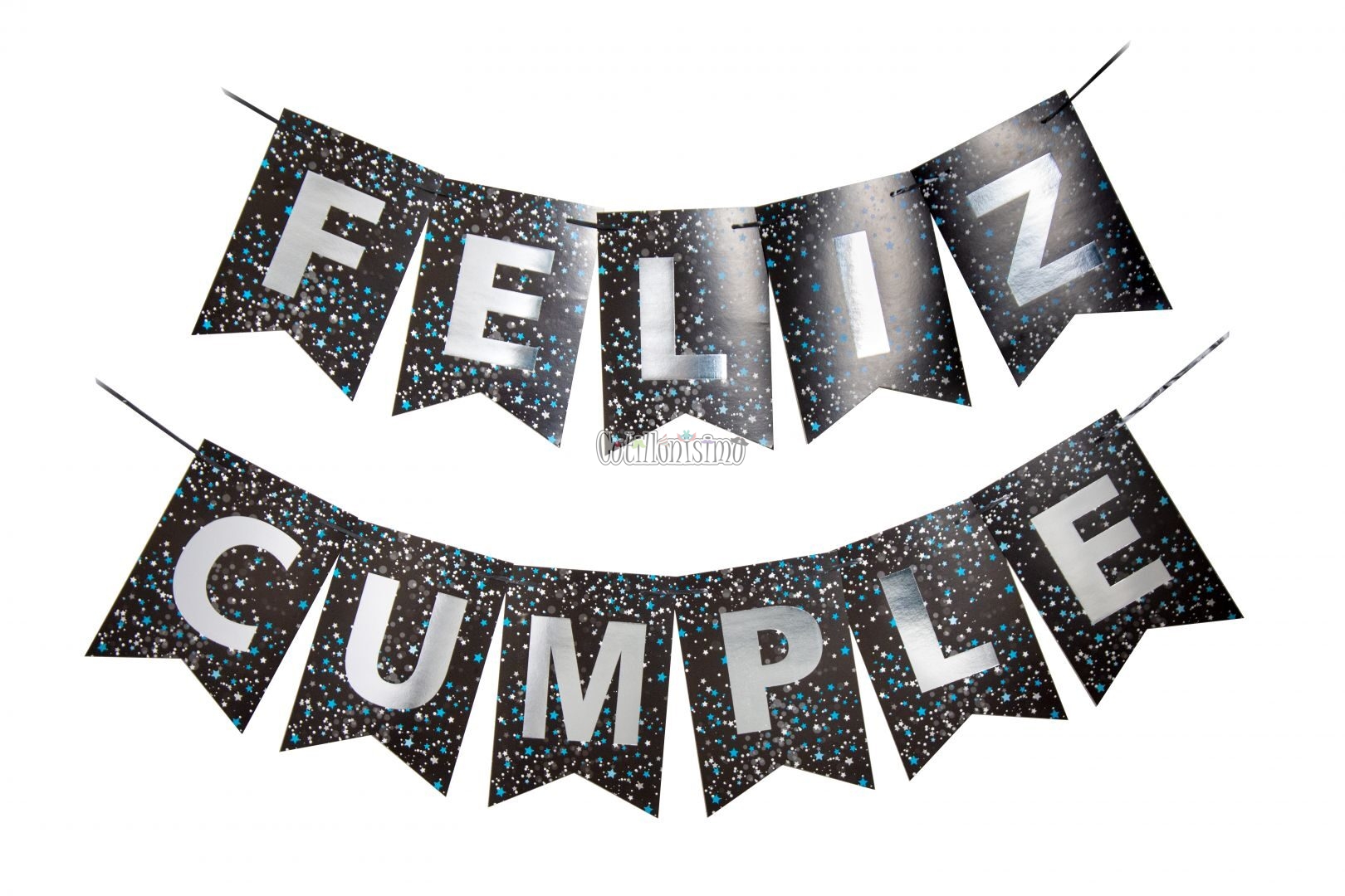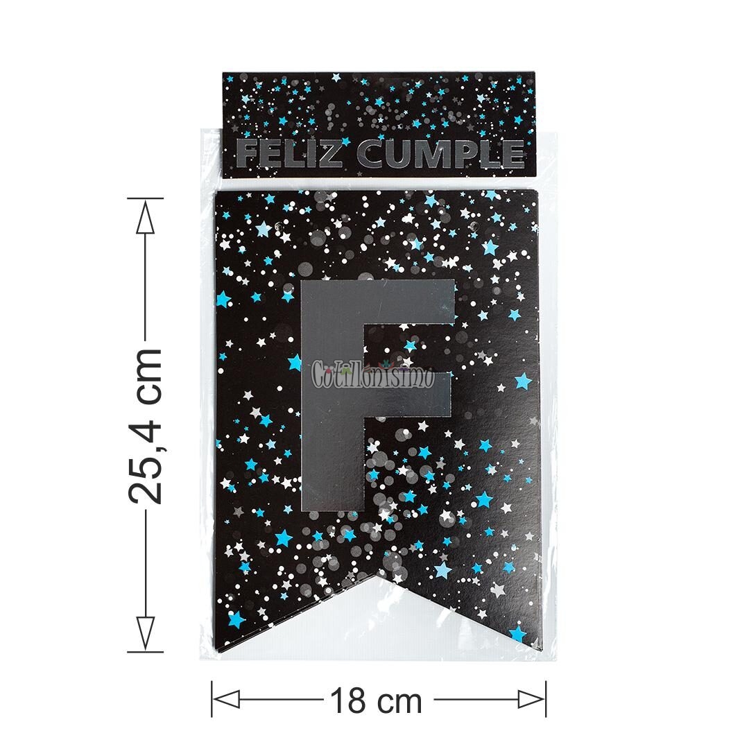 / Banderin Gigante Feliz Cumple Confeti Negro y Celeste