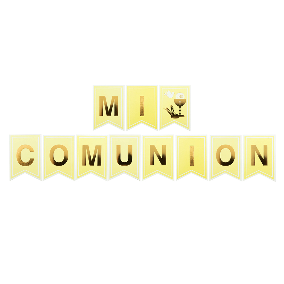 Banderin MI COMUNION Amarillo y Blanco cantidad