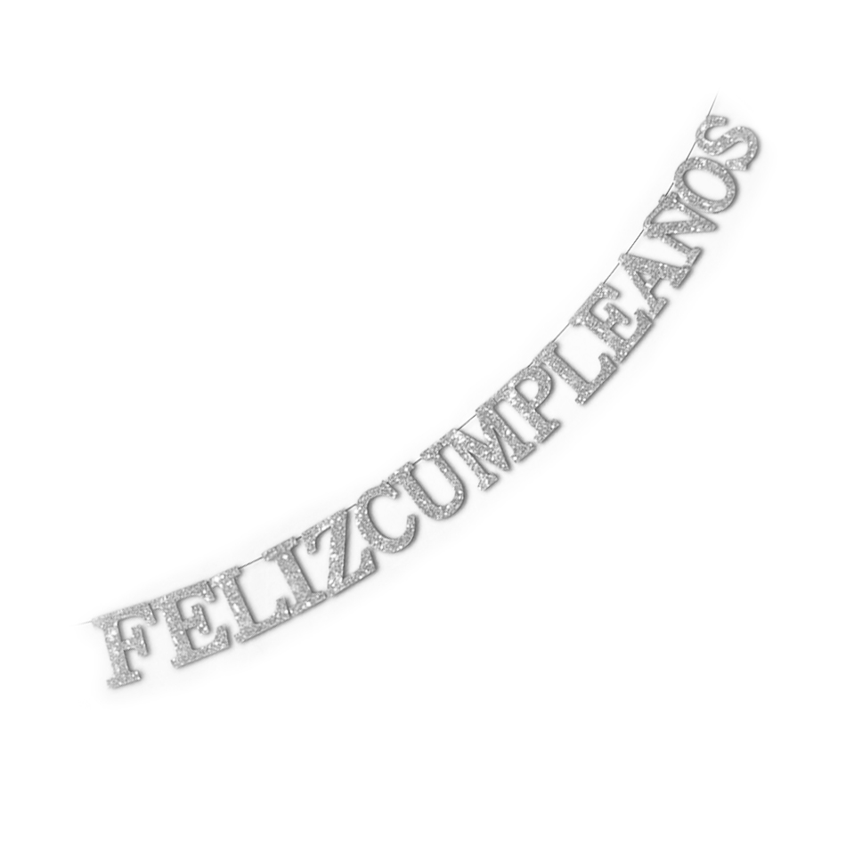 Banderin Palabra Feliz Cumpleaños Plateado Glitter