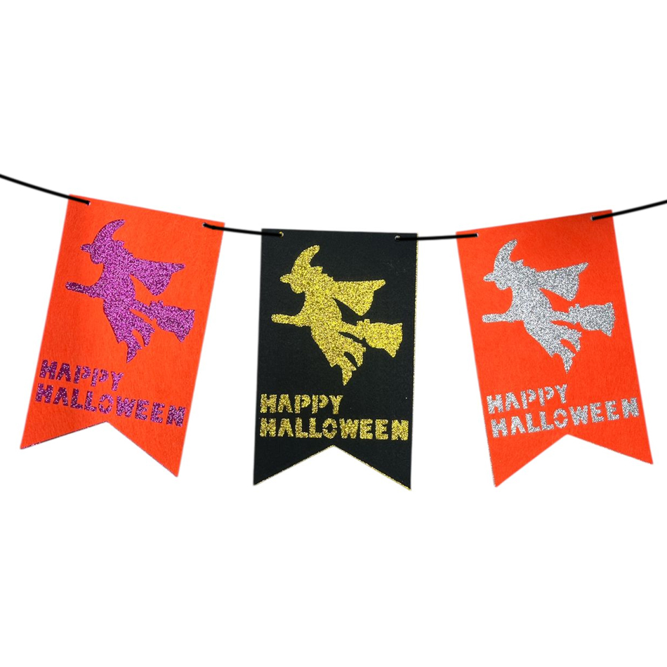 Banderin Guirnalda Pañolenci Happy Halloween Cuadrado Calado Bruja 2,5mts