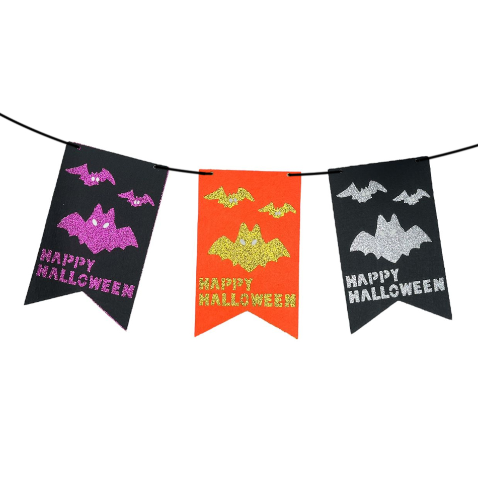 Banderin Guirnalda Pañolenci Happy Halloween Cuadrado Calado Murcielagos Vampiros 2,5mts