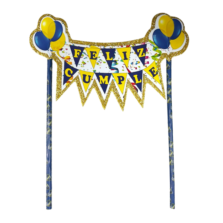 Banderin para Torta Feliz Cumple Azul y Amarillo con Escudo Boca Juniors