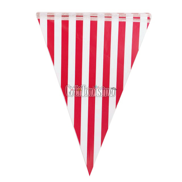Tamaño aproximado: 2 Mts de largo total – 28cm de alto x 18,5cm de ancho de cada Banderín – Separación entre banderines: 3cm