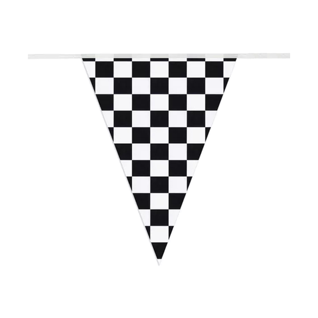 Banderín Triangular De Carreras Cuadriculado Blanco y Negro 2mts