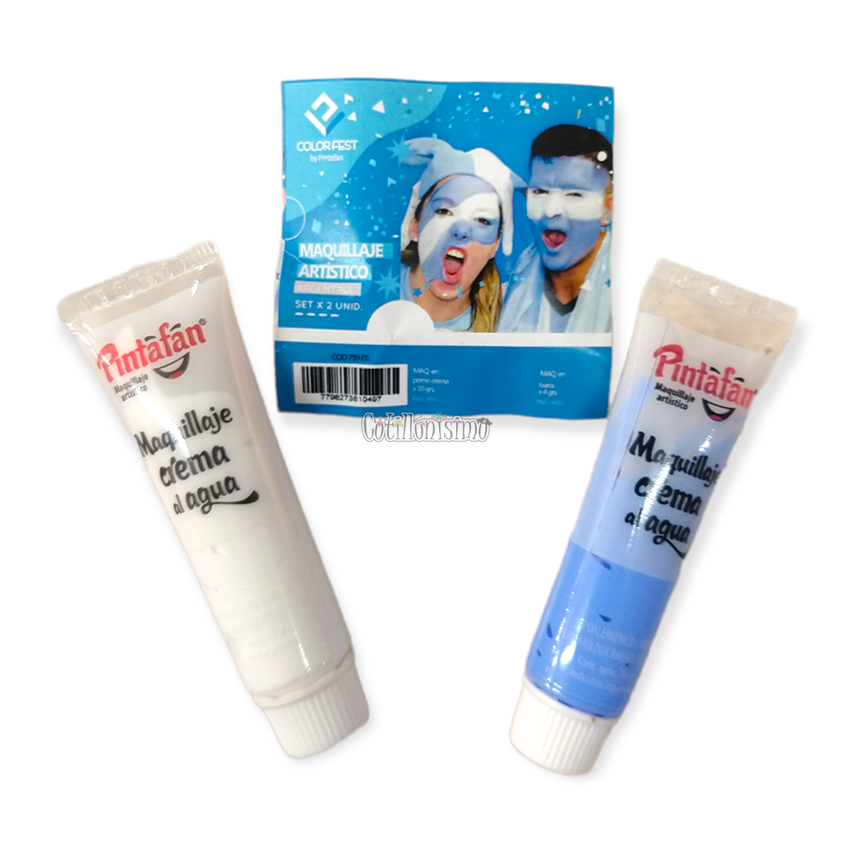 Contiene dos pomos de 10gr c/u Colores Celeste y Blanco