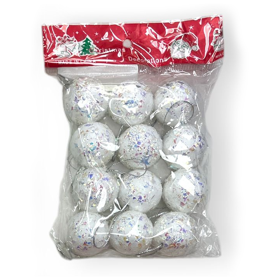 Bolas Nevada Blanca Plateada 3 cm x12 Unidades