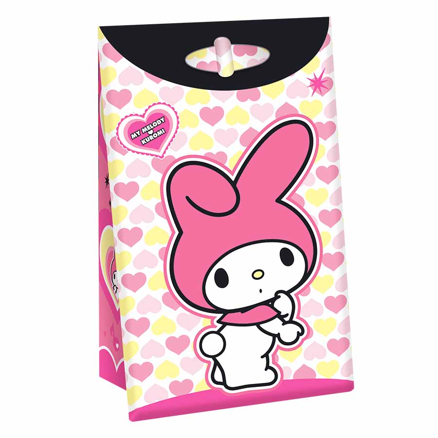 Bolsas de Carton KUROMI Y MELODY con Fuelle y Glitter x8 Unidades