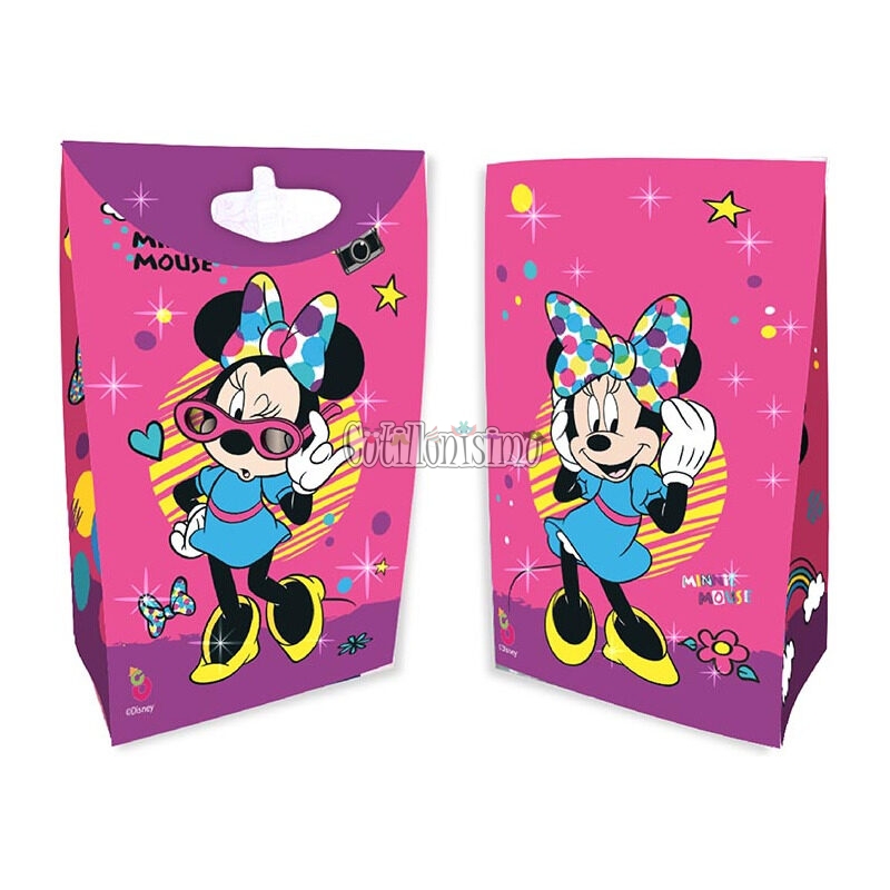 Bolsas de Carton Minnie Mouse con Fuelle y Glitter x8 Unidades Licencia Oficial Disney C.O Medidas aproximadas: 11 cm x 18 cm
