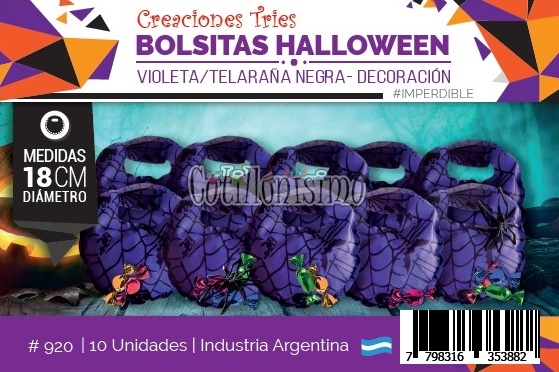 Bolsa Tela Araña Halloween Golosinera Cotillon Redonda Telaraña Base Violeta (Friselina) X10 Unidades