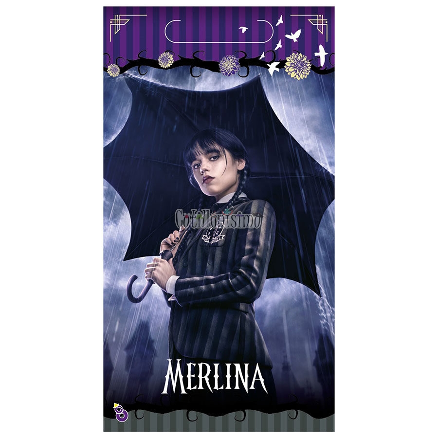 Bolsita Sorpresa Plastico Merlina Adams x10 Unidades Licencia Oficial C.O Medidas aproximadas: 23 cm x 13 cm Con manija