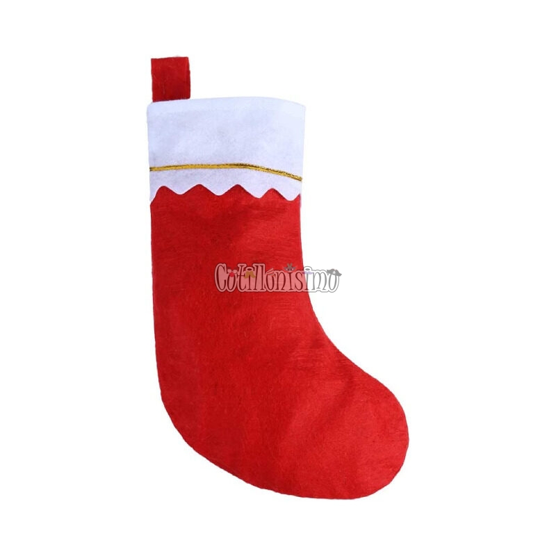 Bota Adorno Navidad Paño con Bordado Dorado con Tira para Colgar Tamaño Aproximado: 23 cm x 43