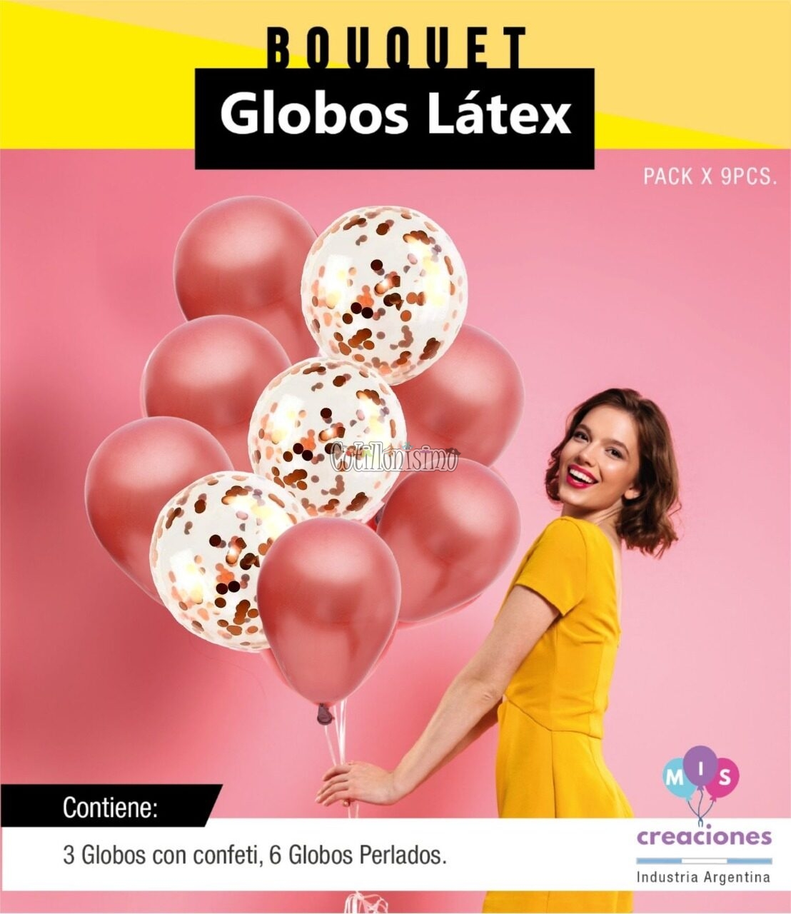 Bouquet Globos con Confetti “Color Rosa Gold” X9 Unidades Contiene