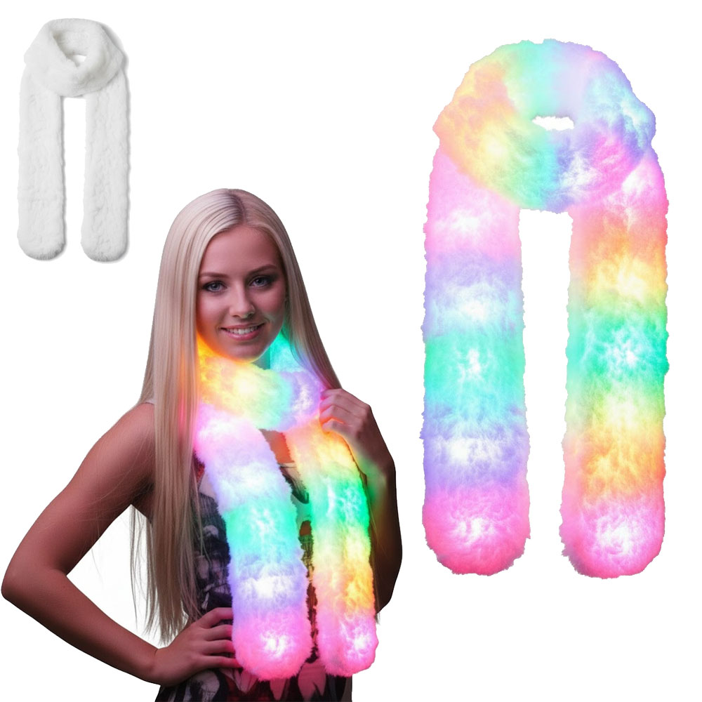 Bufanda Luminosa (LED) x1 Unidad El color del led puede variar y se entrega de forma surtida según disponibilidad del stock Material: Felpudo. LUZ: Luces de múltiples colores LED. Funciona con 3 pilas A4. NO Incluye Pilas. Boton de ON/OFF. Articulo de Cotillon ideal para Cumpleaños, Eventos, Festejos, Fiestas de 15, Casamientos. Abrigate con estilo.