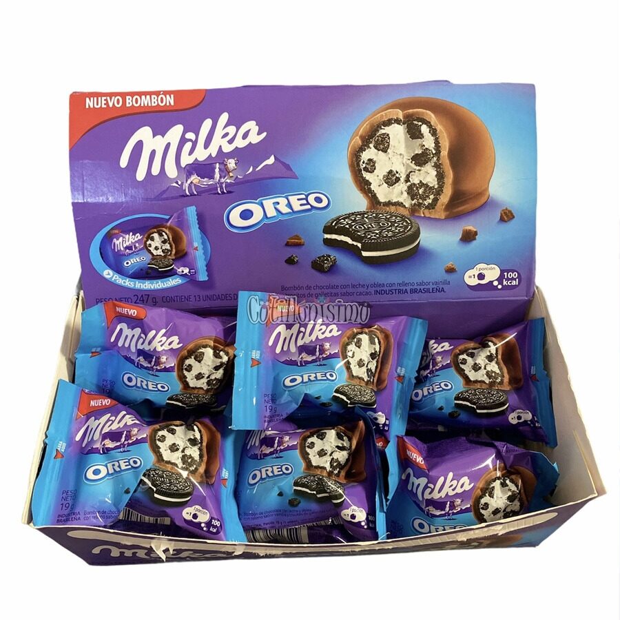 Caja Bombon Milka relleno de trozos de Oreo x 11u Contiene 11 Unidades de 19gr c/u empaquetadas individualmente Peso total: 209gr 7622201420048