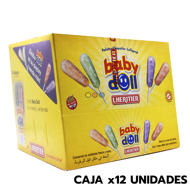 Chupetin Baby Doll Blister x 4 Unidades sabores Manzana, Naranja, Uva y Cereza