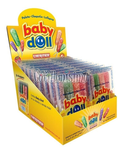Chupetin Baby Doll Blister x 4 Unidades sabores Manzana, Naranja, Uva y Cereza Sin TACC