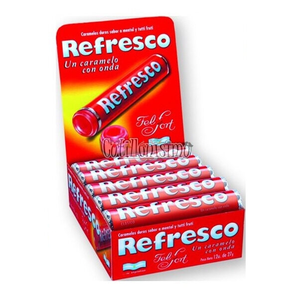 Caja de Pastilla Refresco Sabor Mentol y Tutti Fruti 12 Unidades de 27 Grs cada una