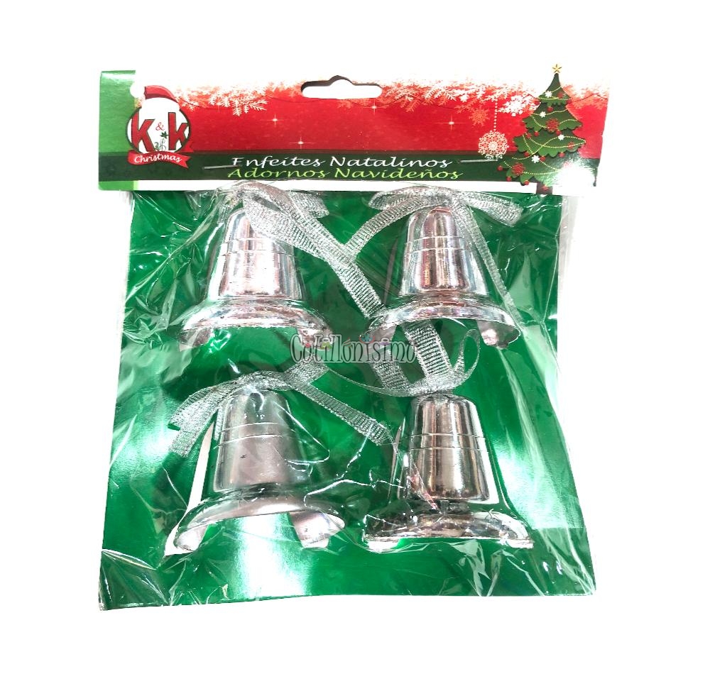Campanas de Navidad / Navideñas Plateada X 4 Unidades Material: Plastico Color: Plateado Tamaño de Cada Campanita: 6 Cm aprox